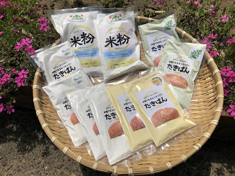 名称 :米粉、米粉のたきぱん 内容量:製菓・パン用米粉2袋各300g・米粉のパンケーキミックス8袋各126g(プレーン×4、青じそ、ゴーヤ、ゆず、かぼちゃ等季節の野菜果物の乾燥粉末をミックスしたもの4袋) 原材料:米粉(三重県産うるち米こしひかり) 米粉のたきぱん米粉、もち米粉、きび糖、アルミフリーベイキングパウダー、伯方の塩、かぼちゃ・ゆず・よもぎ粉のいずれか 保存方法:常温 賞味期限:パッケージに記載 製造者:三重県多気郡多気町波多瀬681-5番地 農事組合法人 元丈の里営農組合 ・ふるさと納税よくある質問はこちら ・寄附申込みのキャンセル、返礼品の変更・返品はできません。